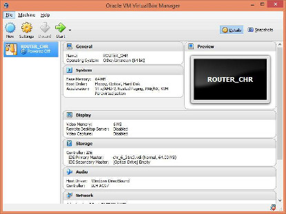 Selanjutnya akan muncul sebuah Virtual Machine baru dengan nama "ROUTER_CHR" dan juga spesifikasi dari Virtual Machine yang telah kita buat sebelumnya.
