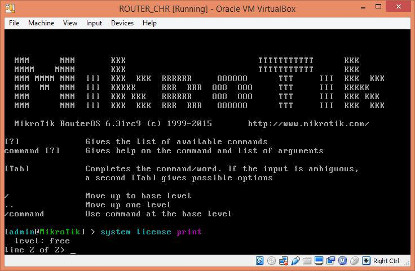 Nah, ketika kita melakukan instalasi pada VM, tentu kita akan mendapatkan RouterOS dengan Level 0 atau Trial Version selama 24 Jam. Dan untuk bisa menggunakannya lebih lama (Full Functionality) kita harus membeli lisensi baru dan menambahkannya di RouterOS tersebut. Ada juga yang istilahnya mencari 'jalan pintas' dengan melakukan crack supaya bisa digunakan lebih lama lagi.