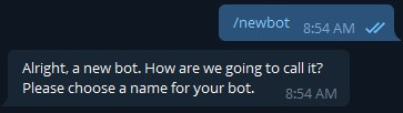 2. Selanjutnya kirim perintah /newbot, akan muncul reply atau respon sebagai berikut dari @BotFather.