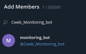 4. Undang bot yang telah dibuat ke sebuah group untuk memonitoring notifikasi dari netwatch,