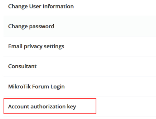 Jika sudah memiliki account di www.mikrotik.com maka langkah selanjutnya adalah membuat Account Authorization Key dari account Anda dengan langkah berikut :