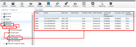 pengechekan terhadap hardisk tersebut sudah terbaca atau belum pada menu Storage>>volumes>>view