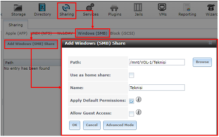 - Langkah pertama bisa menekan Sharing>>Windows (SMB)>>Add Windows (SMB) Share