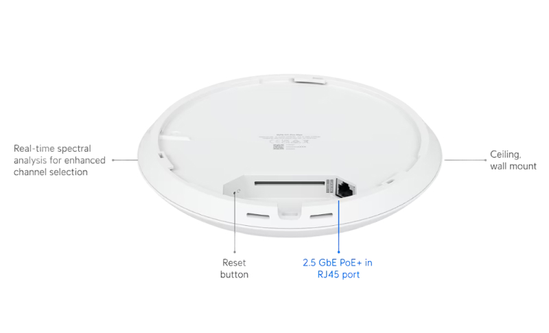 Ceiling-mounted WiFi 7 AP with 8 spatial streams, 6 GHz support, and a dedicated spectral scanning engine for interference-free WiFi in demanding, large-scale environments.