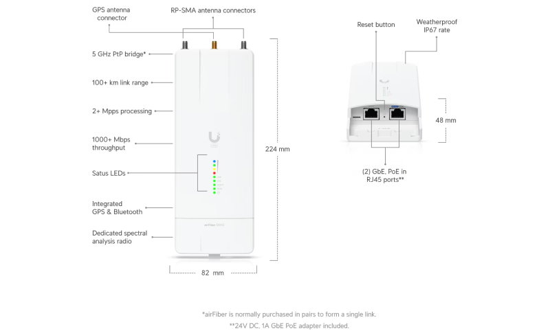 Ubiquiti AF-5XHD True 1+ Gbps spectrally efficient, noise resilient PTP technology specifically designed for WISP’s.