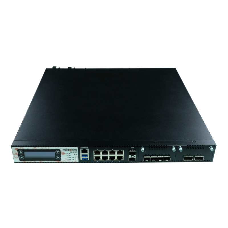 Mikrobits Dinara 1U rackmount Network Appliance yang berbasiskan prosesor Intel Xeon W Octa Core 3.4GHz. Dilengkapi dengan 8 port Intel gigabit ethernet, 2 port Intel 1G fiber SFP, 4 port Intel 10G fiber SFP+ dan 2 port Intel 40G fiber QSFP+.