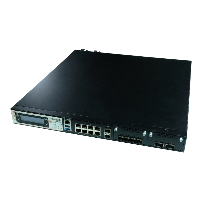 Mikrobits Dinara 1U rackmount Network Appliance yang berbasiskan prosesor Intel Xeon W Octa Core 3.4GHz. Dilengkapi dengan 8 port Intel gigabit ethernet, 2 port Intel 1G fiber SFP, 4 port Intel 10G fiber SFP+ dan 2 port Intel 40G fiber QSFP+.