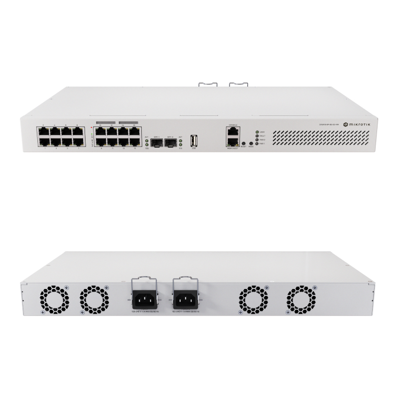 MikroTik CRS418-8P-8G-2S+RM adalah perangkat all-in-one yang menggabungkan 16 port Gigabit Ethernet (8 port mendukung PoE-Out 802.3af/at), dua port 10G SFP+, dan CPU Quad-core 2.2 GHz untuk menangani beban kerja routing serta switching secara intensif. Dirancang dalam bentuk rackmount yang tahan lama, perangkat ini berfungsi sebagai solusi efisien untuk menyederhanakan manajemen kabel, memberi daya pada perangkat seperti CCTV/AP, serta menyediakan koneksi high-bandwidth untuk kantor menengah dengan harga yang tetap terjangkau.