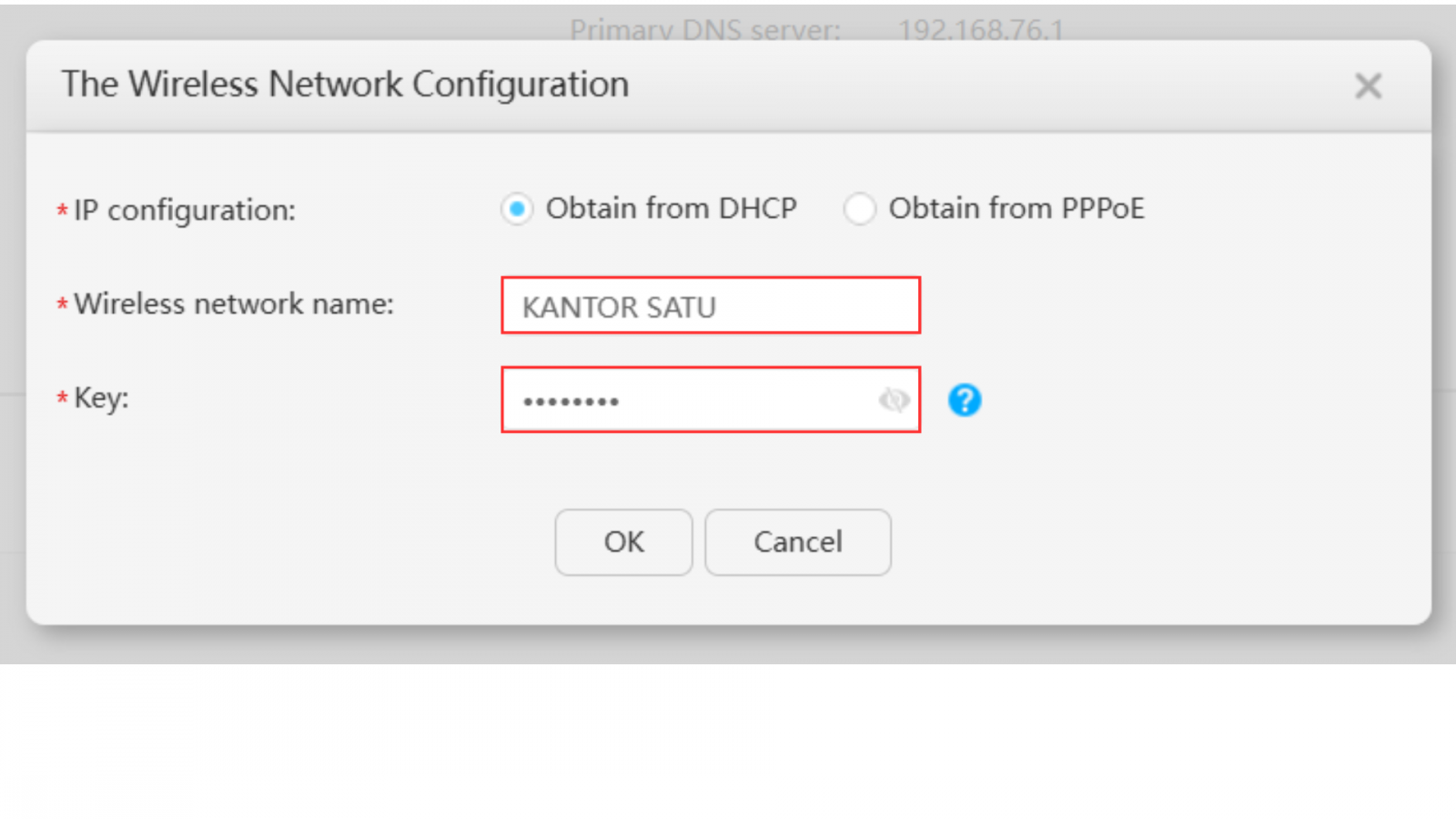 note : setelah konfigurasi di-apply, default SSID 'hw_could_xxxx' akan digantikan dengan SSID yang baru 'KANTOR SATU'.