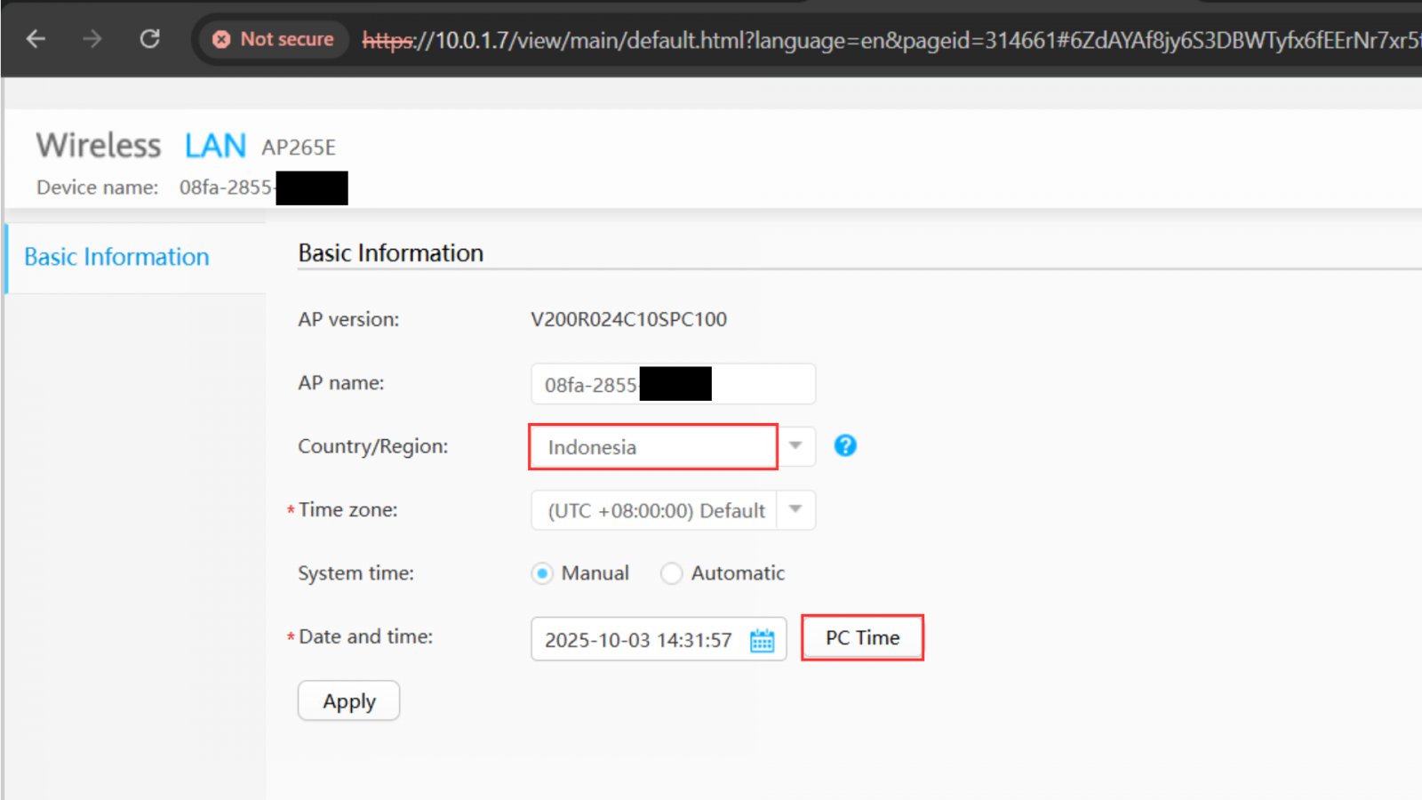 Kemudian koneksikan laptop dengan SSID yang telah dibuat sebelumnya. kemudian akses kembali web konfigurasi dari AP dengan IP yang sama yaitu 10.0.1.7.