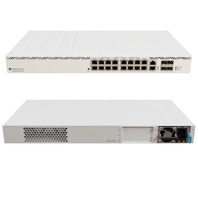 CRS320-8P-8B-4S+RM, switch PoE++ (802.3bt) berdaya tinggi pertama dari MikroTik .
